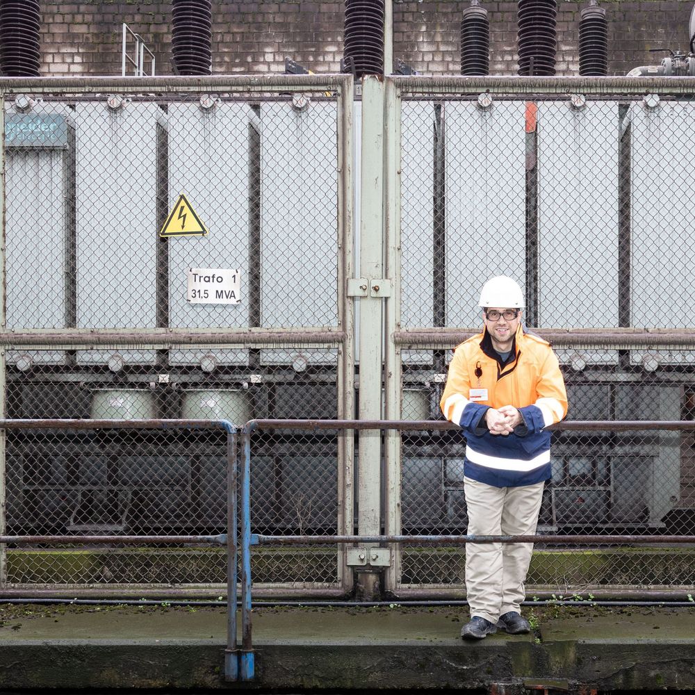 „Ich überlegte dann und entschied mich letztlich für die Hüttenwerke Krupp Mannesmann in Duisburg, weil allein die Einführung hier ganz besonders war und ich das Unternehmen einfach spannend finde. Nicht zuletzt meine flexiblen Arbeitszeiten inklusive Homeoffice spielen für mich als Vater von drei Kindern eine wichtige Rolle.“ Nun kümmert er sich u. a. um die Erneuerung von hunderten Kilometern Kabel, durch die die elektrischen Ströme der Zukunft im Hüttenwerk fließen. Obwohl er erst seit 2023 hier tätig ist, leitet er bereits diese Projekte im gesamten Werk – gemeinsam mit sechs Kolleg*innen. Geht es also beispielsweise um den Austausch eines alten Energiekabels, das zukünftig ein Vielfaches der Leistung übertragen muss, fängt sein Job bei der Aufgabenstellung an, reicht über ein sogenanntes Lastenheft, das alle Teilschritte beinhaltet, über die Suche nach passenden Partnern bis zur Inbetriebnahme. Dabei arbeitet er auch mit anderen Ingenieur*innen aus den Bereichen Statik, Elektrotechnik, Maschinenbau und Anlagentechnik zusammen „Ich komme so ziemlich mit jeder Zunft in Berührung, weil ich das Projekt von vorne bis hinten begleite.“