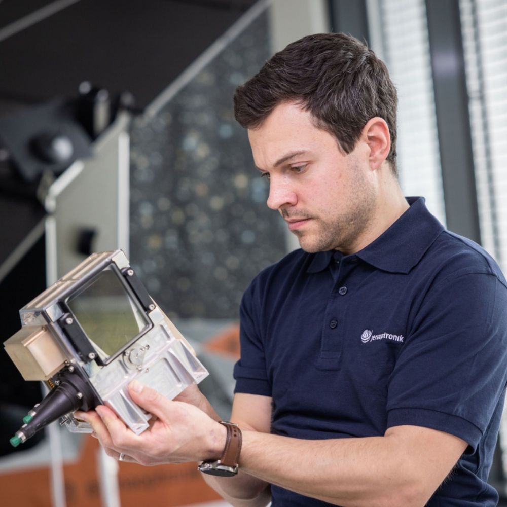 Der LiDAR von Aleksandar Lukić ist das eine Bauteil an Bord der kommenden Mondkapsel. Das andere ist ein Sternensensor. Im Grunde eine extrem hochauflösende Kamera, die die Position der Landefähre im Weltall anhand einer integrierten Sternenkarte permanent abgleicht. Ein Navi fürs Weltall. 250 Kolleg*innen sind in Jena an diesen technischen Spezialitäten für die Raumfahrt beteiligt und alle spüren sie diesen ganz besonderen Spirit, der vom Weltall ausgeht. Der Blick zu den Sternen hat bei allem Verständnis für Technik und Physik einfach etwas Faszinierendes und bei Jena-Optronik ist man mittendrin in dieser Faszination.