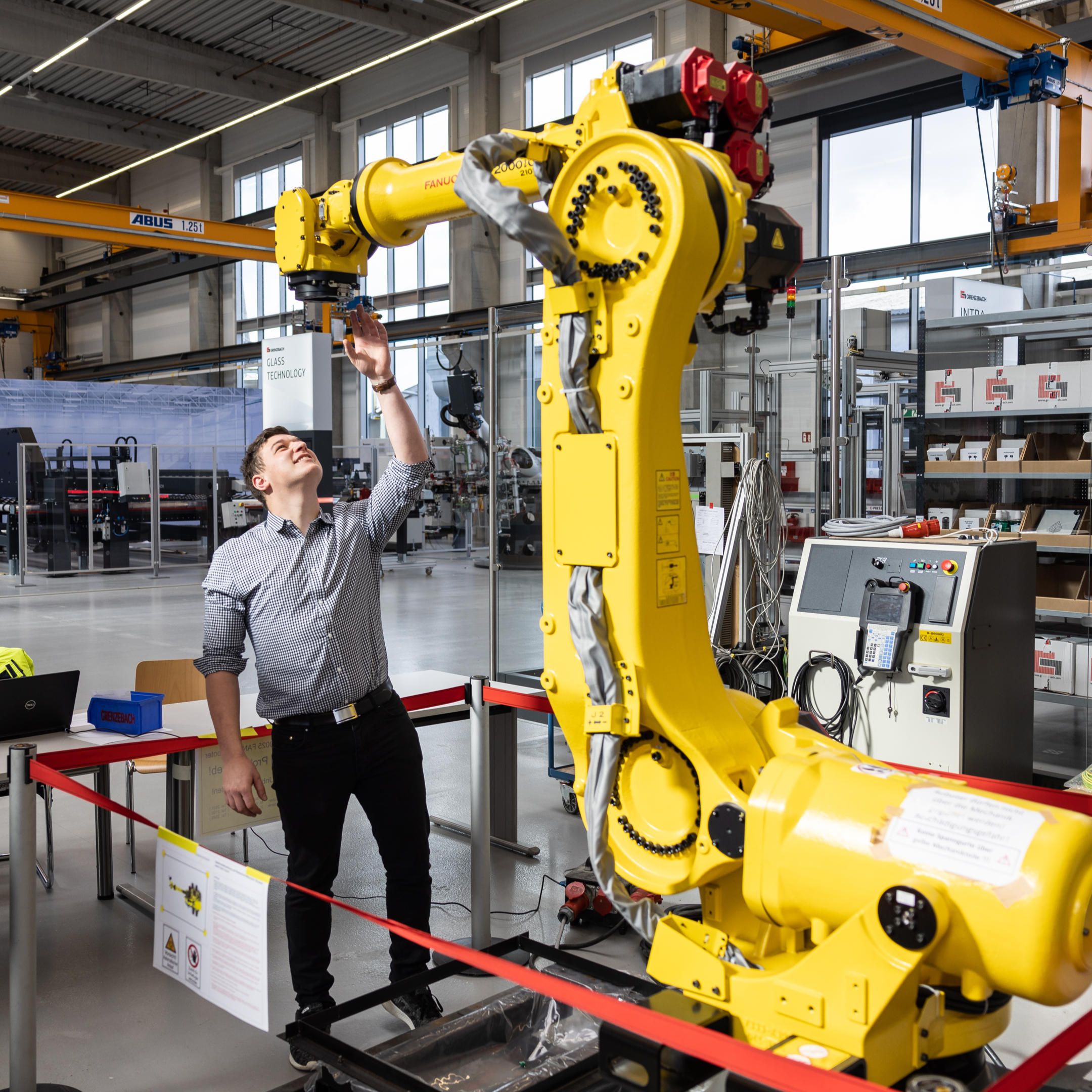 Auf der einen Seite ein hochbegabter Handwerker, auf der anderen Seite ein Schüler, der bereits im Mathezweig der Realschule das Fach Zeichnen hatte. „Ich habe auch zuhause gezeichnet und entworfen. Nicht künstlerisch, eher technisch. Modelle, ein Haus, ein Zimmer. Nur für mich, nur zum Üben. Und das hat mir echt Spaß gemacht, auch deshalb habe ich mich bei der Grenzebach Maschinenbau GmbH beworben.“ Doch bevor er sich bei der süddeutschen Firma für Anlagenbau bewarb, dachte er noch über eine nun wirklich naheliegende Schreinerlehre nach. Wäre da nicht das dafür notwendige Berufsgrundschuljahr. Grenzebach versprach demgegenüber ein höheres Ausbildungsgehalt, einen direkten Einstieg ohne praktisches Jahr und eine Übernahme nach der Ausbildung. Der Deal stand – Alexander Schütz wollte Technischer Zeichner werden.
