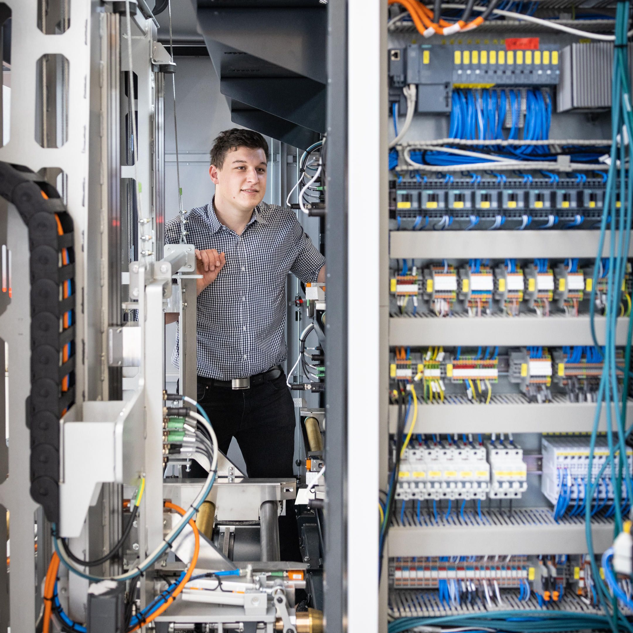 2011 begann er also in dem rund 1.500 Mitarbeiter*innen starken Unternehmen seine Ausbildung, die kurz vor Beginn ganz offiziell in den Technischen Produktdesigner umgewandelt wurde. Dreieinhalb Jahre Praxis pur, eine Berufsschule in Augsburg und eine Zwei im Abschluss. Fertig. Das war seine Ausbildung – und das sollte sie auch bleiben. Zumindest auf dem Papier. Denn jetzt macht sich Alexander Schütz auf einen Weg, der in der Welt der Ingenieur*innen durchaus ungewöhnlich ist. Auch wenn er es noch nicht weiß: In gerade einmal sieben Jahren wird er in seinem Ausbildungsunternehmen den Job eines Ingenieurs innehaben, ohne jemals eine Uni von innen gesehen zu haben. Wie kann das funktionieren?