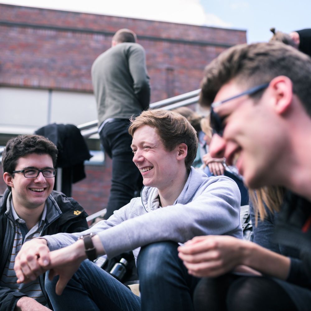 Ein wichtiger Aspekt des Studierens ist der Kontakt zu Kommiliton*innen. Moritz berichtet, dass er viele Kontakte schon in den Vorkursen und Tutorien geknüpft habe. Besonders gut findet Frederick, sich nicht immer nur zu den gleichen Leuten zu setzen – das kostet vielleicht erst mal Überwindung, hilft aber dabei, Freund*innen zu finden. „Für die Erstis haben wir auch noch eine WhatsApp-Gruppen eingerichtet", erklärt Frederick.