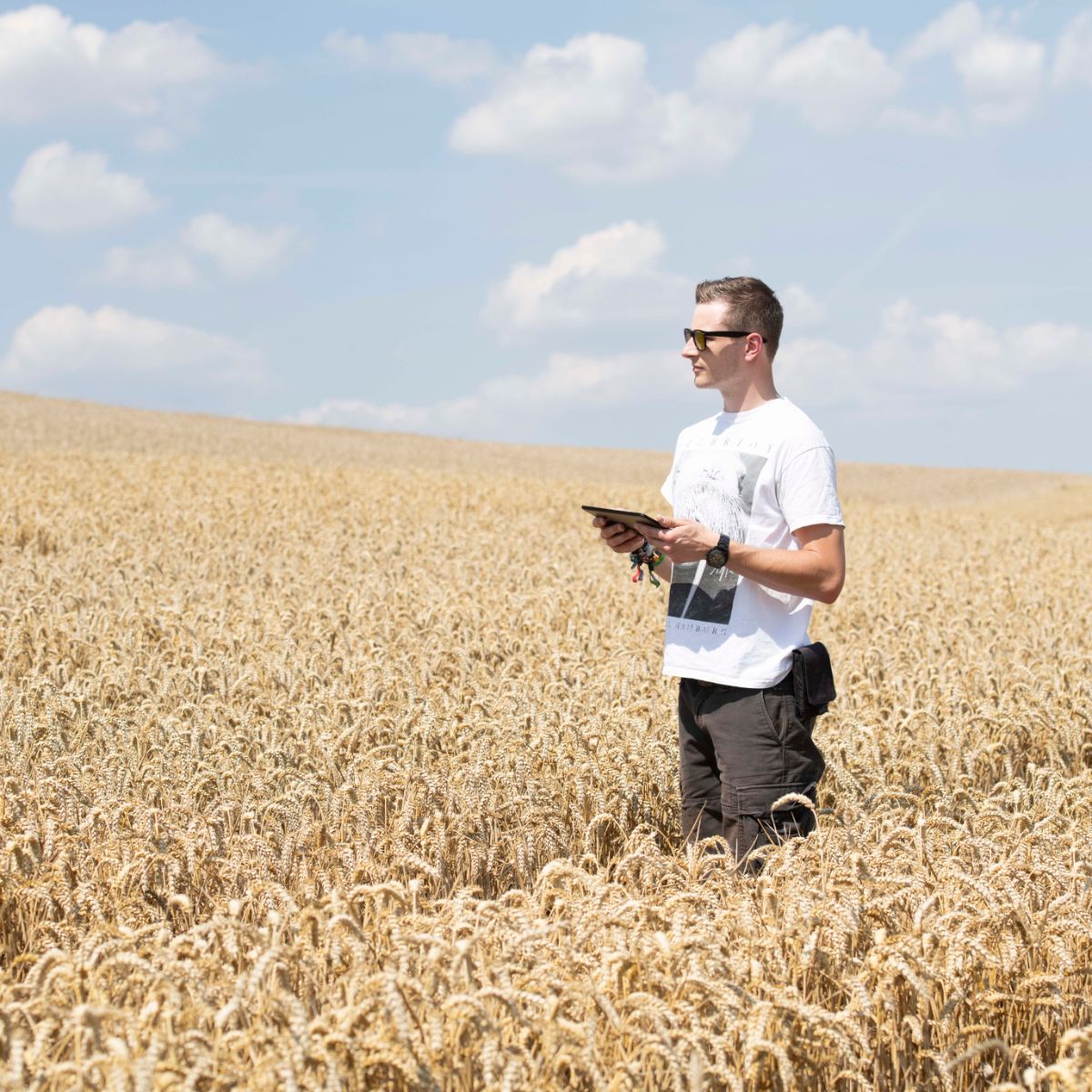Düngung ist ein großes Thema, Pflanzenschutz ebenso. Wir erstellen Modelle, die uns zeigen, wie sich bestimmte Faktoren, etwa das Wetter, auf das Wachstum auswirken. Es ist sehr interessant zu schauen, wie sich Pflanzen unter bestimmten Bedingungen entwickeln. Muss ich eine Pflanzenschutzmaßnahme vornehmen? Reicht eine niedrigere Dosierung? Oder kann ich sie ganz weglassen? Nachhaltige Landwirtschaft und Einsparpotenziale sind große Themen. Wenn zum Beispiel zu wenig Wasser im Boden ist und die Pflanze ohnehin abstirbt, dann brauche ich auch nicht zu düngen. So verhindere ich, dass Nitrat ausgewaschen wird.