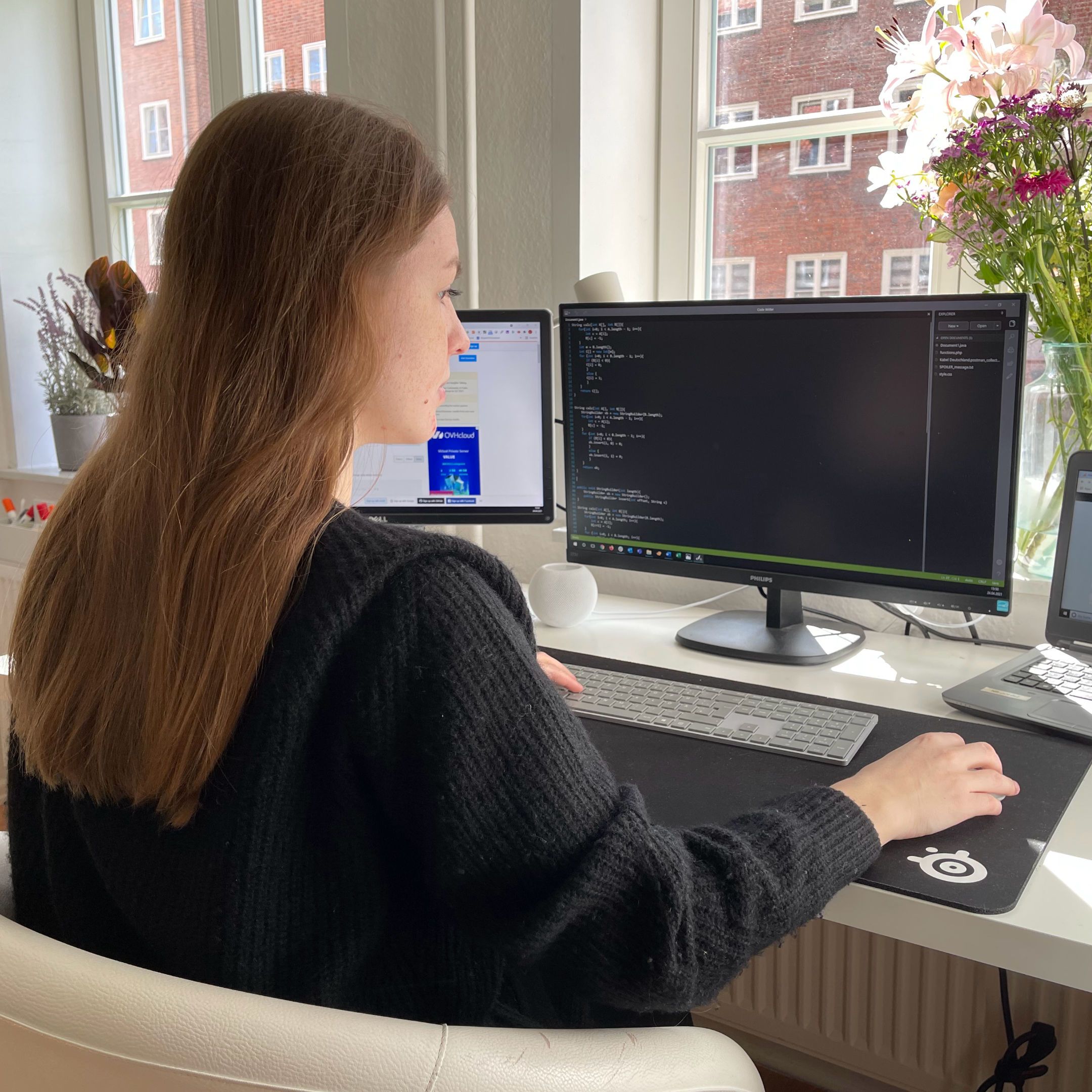 „Natürlich ist es so, dass es das Lernen erleichtert, aber ich kenne viele, denen Mathe in der Schulzeit nicht so leichtgefallen ist. Auch wenn Mathe eine große Rolle spielt, ist IT viel mehr als nur das. Es ist wie Sprachen lernen, sage ich immer. Zudem lässt sich der Anteil von Mathe im Studium gut über die Wahl der Module steuern. Ansonsten hat IT viel mit Lösungskompetenz zu tun. Rätsel lösen und kreative Ideen helfen da weiter. Ein Studium ist wie ein Puzzle und die Teile setzen sich nach und nach zusammen. Irgendwann kommt der ‚Klick-Moment‘, man erkennt, dass die Module aufeinander aufbauen und denkt ‚So schwer ist es ja gar nicht‘. Man muss nicht mit 10 Jahren schon nerdig gewesen sein oder seinen Computer auseinandergebaut haben, um IT zu studieren. Das habe ich auch nicht gemacht. Ich habe Sims gespielt - das war schon alles an Berührungspunkten mit Computern.“