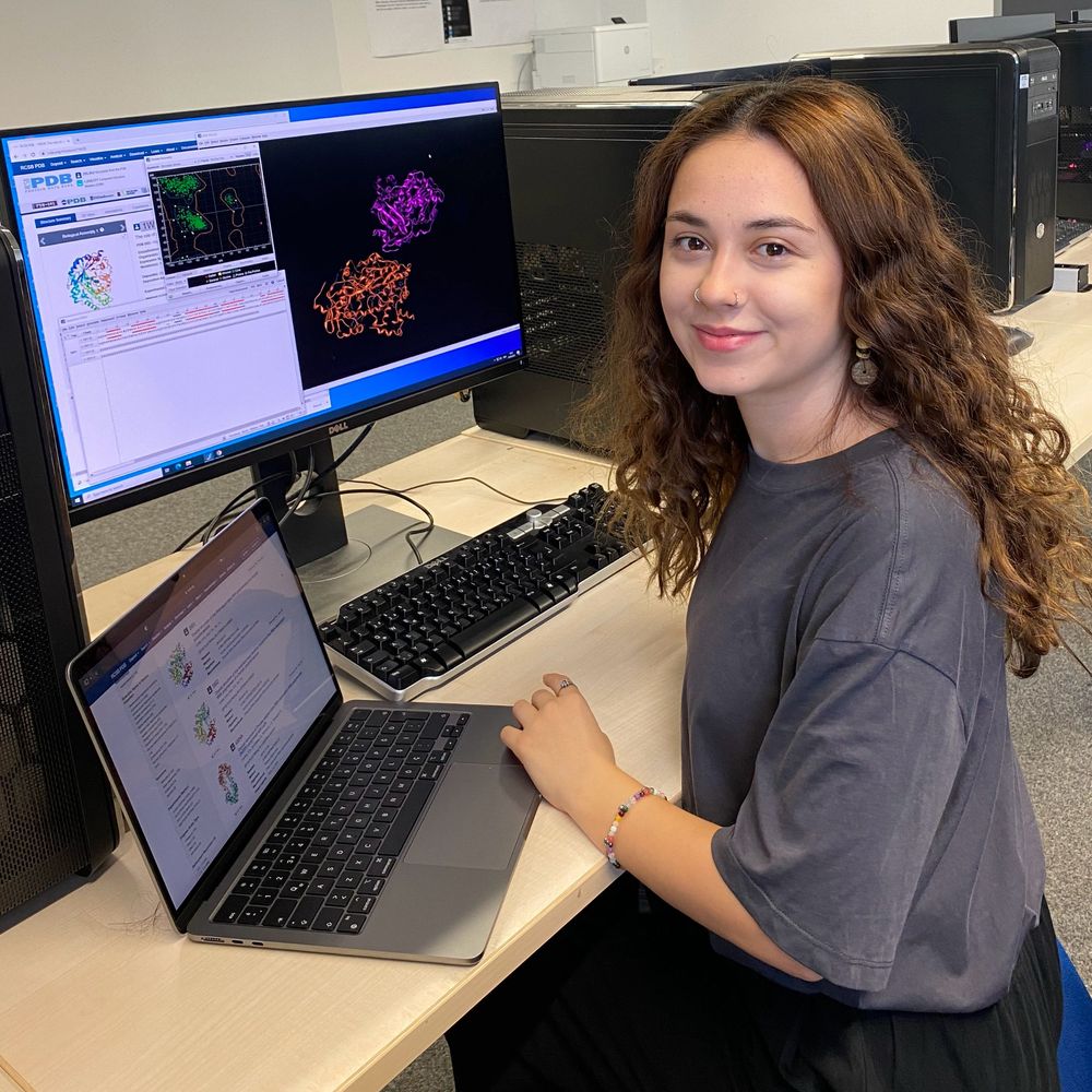 Ob Pharmazie, Genetik, Molekularbiologie – oder wie im Fall von Deniz Bioinformatics and Genetics – egal, was man im Bachelor studiert hat, die Kurse im ersten Mastersemester von Life Science Informatics richten sich danach, all diese Studierenden auf einen Wissenstand zu bringen. „Man muss zusammenarbeiten und einander die Wissenslücken füllen, so erleichtert man sich das Studium,“ rät Deniz. Jetzt im zweiten Semester macht ihr ein Kurs besonders Spaß. „Molecular modelling and drug design ist genau genommen der Hauptgrund, warum ich diesen Master studiere.“ Schon in ihrer Bachelorarbeit beschäftigte sie sich mit einer bekannten molekularen Struktur: dem Coronavirus. Mit computergestützten Simulationen analysierte sie, wie man bekannte Arzneimittel für Covid 19 umfunktionieren kann. „Es gibt so viele Krankheiten, an denen man arbeiten kann und die Life Science Forschung kann wirksame, effiziente Medikamente liefern.“