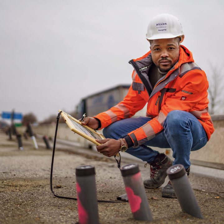 Mit detektivischem Gespür sucht der junge Ingenieur nach den Überbleibseln des Bergbaus, die große Hohlräume unter den Straßen hinterlassen: „Zuletzt haben wir einen Hohlraum aufgespürt und verfüllt, der rund zehn Meter hoch und drei Meter breit war – so groß wie ein Einfamilienhaus. Und das ziemlich knapp unter der Fahrbahndecke.“ Das Loch musste mit insgesamt 800 Tonnen Betongemisch wieder aufgefüllt werden, um den löchrigen Untergrund zu stabilisieren. Solche Funde sind nicht so selten, wie man vielleicht denkt. Expert*innen an der Schnittstelle zwischen Bergbau, Vermessung und Geotechnik sind mittlerweile international gefragt. Denn der Rohstoffabbau hinterlässt überall seine Spuren. Es sind ganz spezielle Sicherungs- und Sanierungsmaßnahmen nötig, um die Risiken an ehemaligen Bergwerksstandorten einzudämmen. Doch Cedric ist zuversichtlich: „Aktuell sind wir im Zeitplan aber ein Stück liegt noch vor uns. Wenn wir unsere Arbeiten abgeschlossen haben sind wir dauerhaft auf der sicheren Seite.“ Dann geht es, dank voller Auftragsbücher, sofort ab zur nächsten Baustelle!