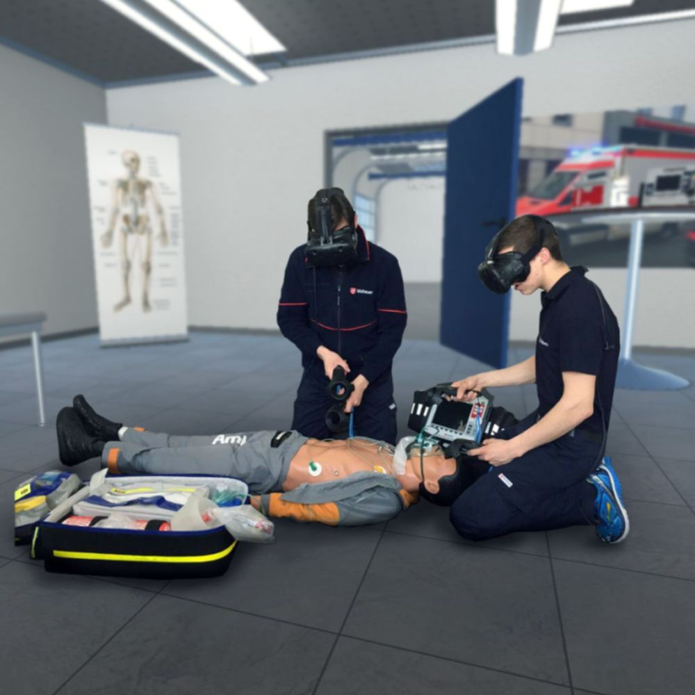 Das Projekt ViTAWiN steht für virtuell-augmentiertes Training (VR-Training) für die Aus- und Weiterbildung in der interprofessionellen Notfallversorgung. Was ist denn überhaupt ein Notfall? Fachleute sprechen von einem Notfall, wenn eine sehr schwere oder schon lebensbedrohliche Verletzung oder Erkrankung vorliegt. Nicht nur für angehende, sondern auch für erfahrene Notfallsanitäter*innen ist das eine herausfordernde Situation. Der Wirtschafts- und Organisationspsychologe Christian Elsenbast und der Medizininformatiker Dominik Schnier vom Fraunhofer IESE sind damit unter den Ersten, die in einem Konsortium mit weiteren Partnern ein VR-Trainingsprojekt zur virtuell-augmentierten Ausbildung im Rettungsdienst auf den Weg gebracht haben. Zu den ViTAWiN Projektpartnern gehören, unter der Leitung der Hochschule Hannover (Prof. Dr. Schild, Abt. Informatik der Fak. IV), die TriCAT GmbH, das Malteser Bildungszentrum HRS, die Johanniter Akademie Niedersachsen Bremen und das Hanse Institut Oldenburg.